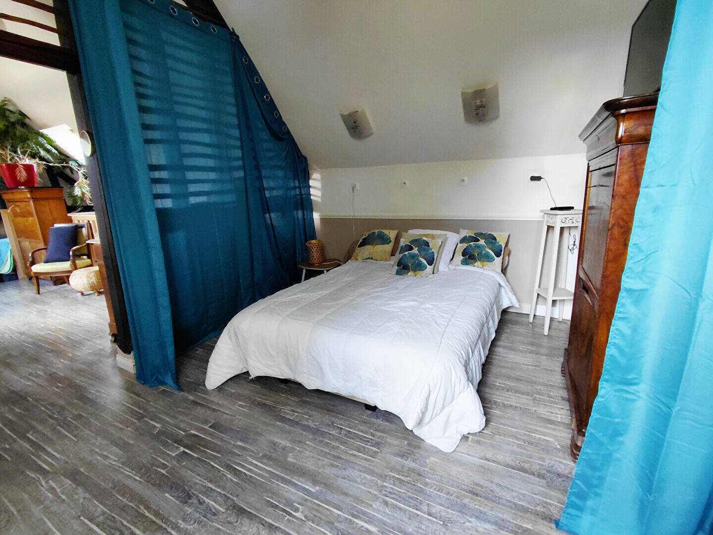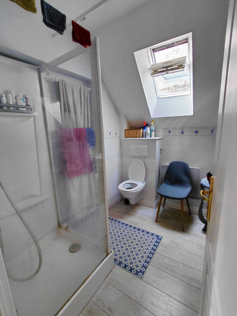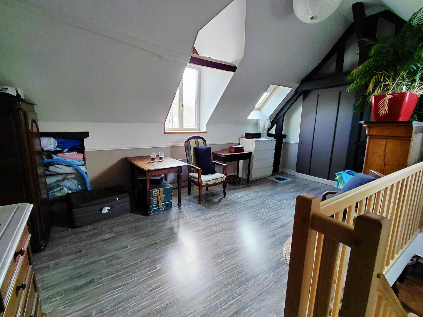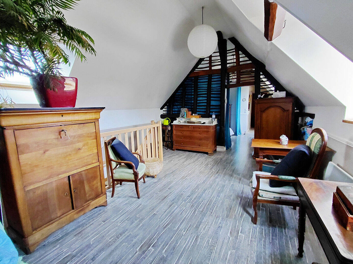 A l'étage 2 chambres, une grande et lumineuse pièce palière, une salle d'eau avec wc. Possibilité d'aménager une seconde partie des combles d'environ de 50m². Le tout sur un terrain sans vis à vis et entièrement clos, avec un hangar de 50m².